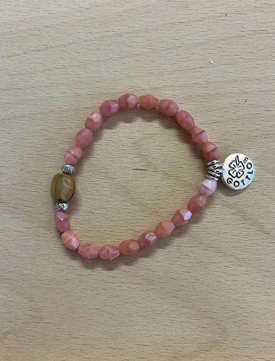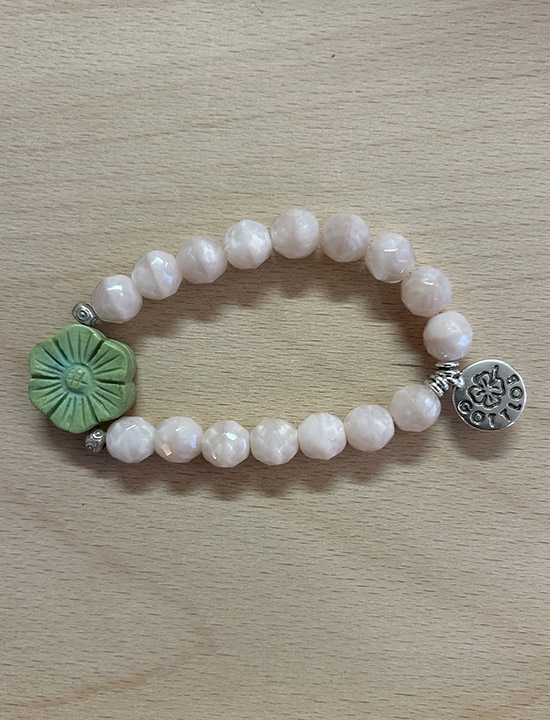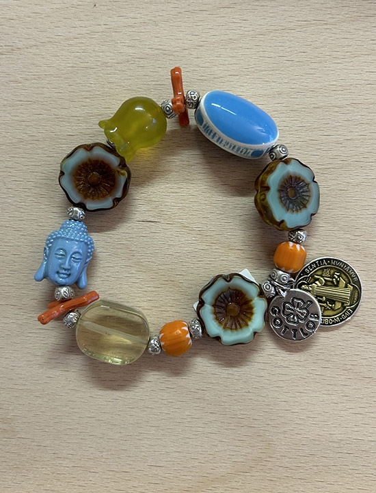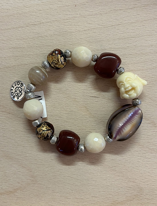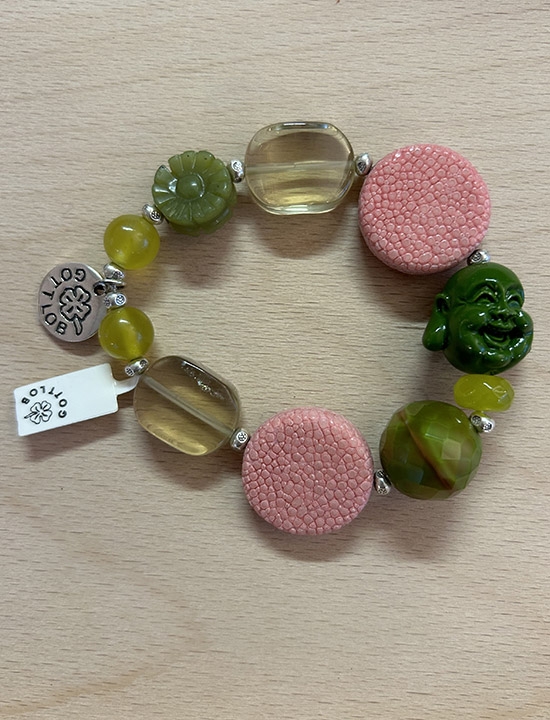 Außerdem verarbeitet sie Zuchtperlen und Halbedelsteine wie Jade, Magnesit, Rosenholz, Türkise und Koralle - gefärbt und ungefärbt.