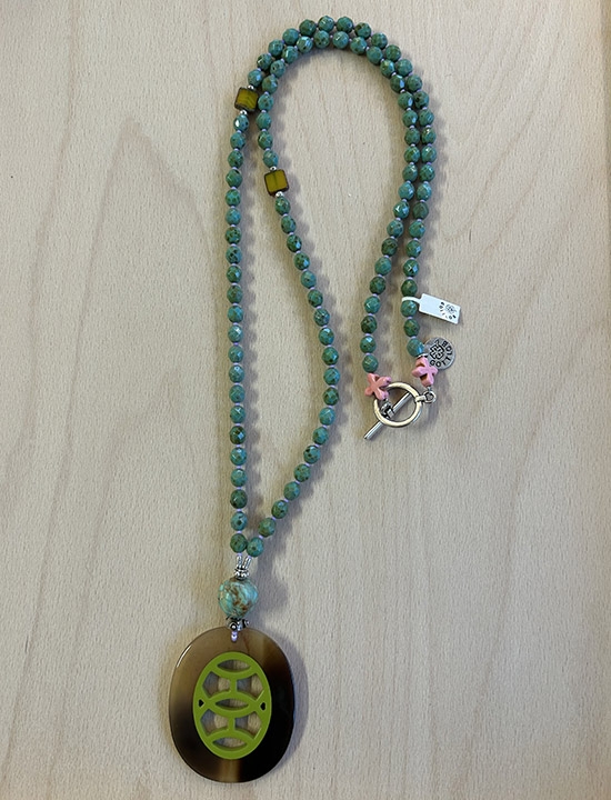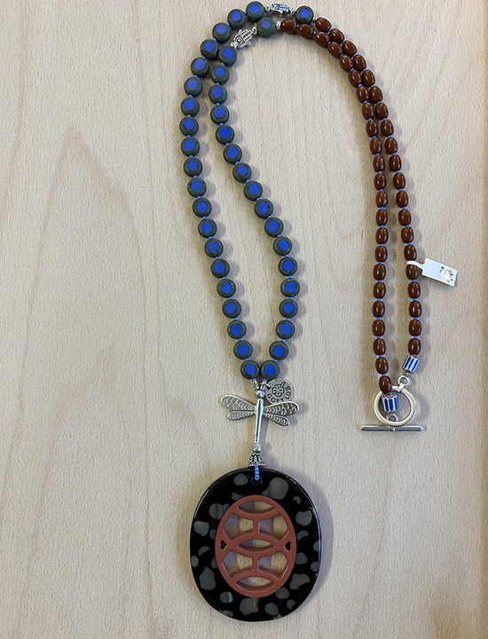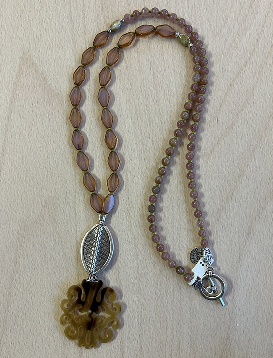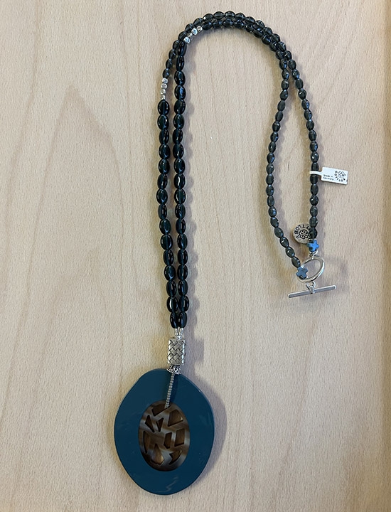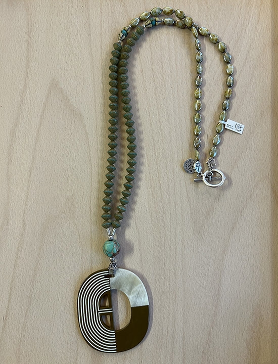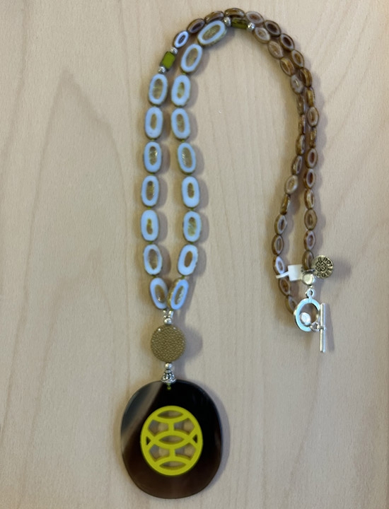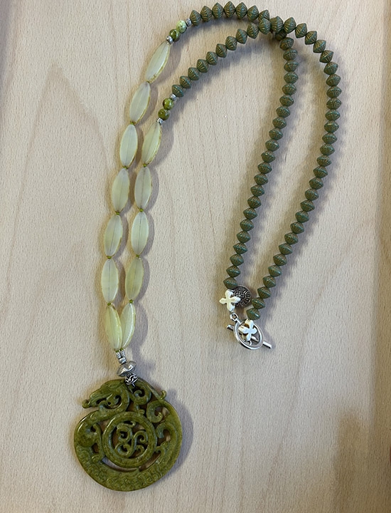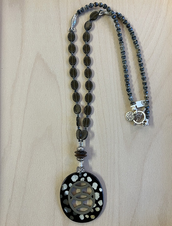 Aber auch Ebenholz, Muscheln, Perlmutt, tropische Samen, massives Silber und versilberte Teile finden sich in ihren Ketten.