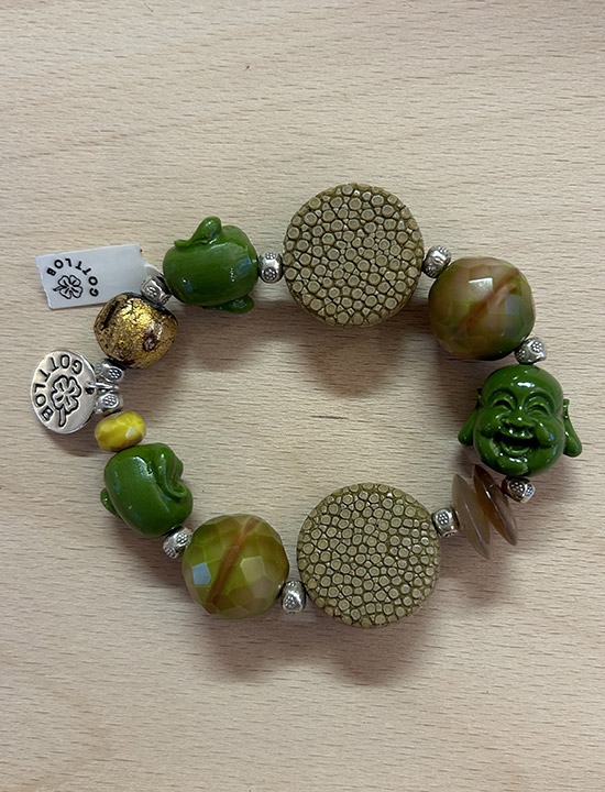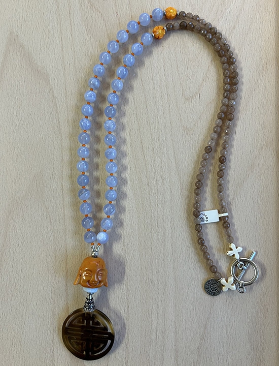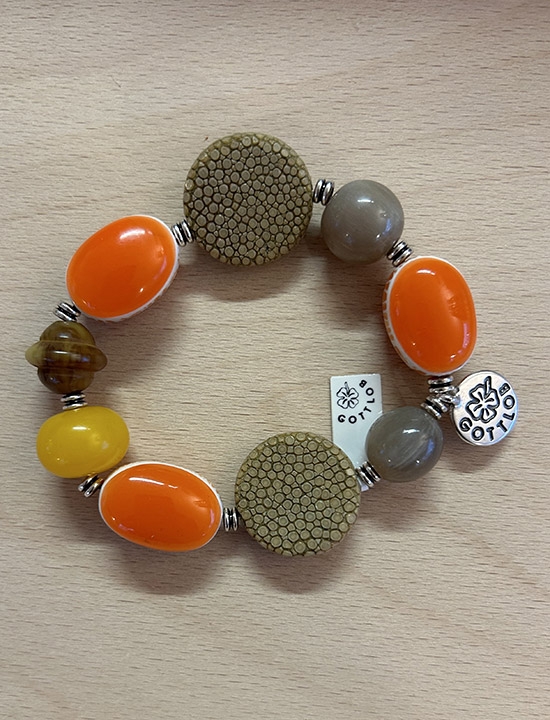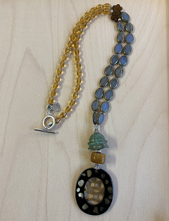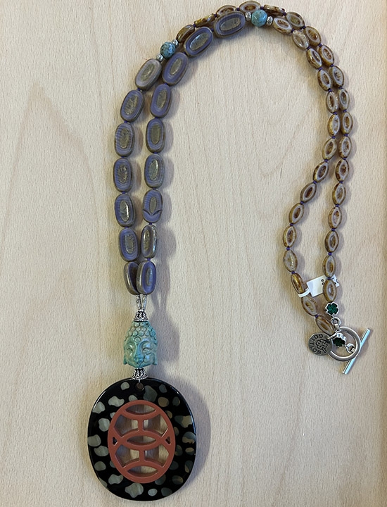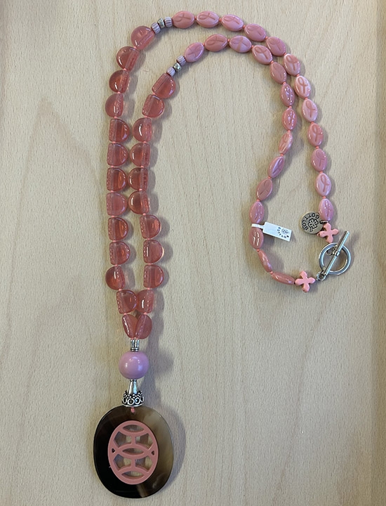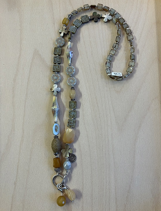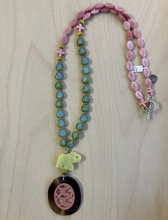 Aber auch Ebenholz, Muscheln, Perlmutt, tropische Samen, massives Silber und versilberte Teile finden sich in ihren Ketten.