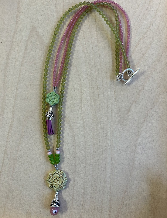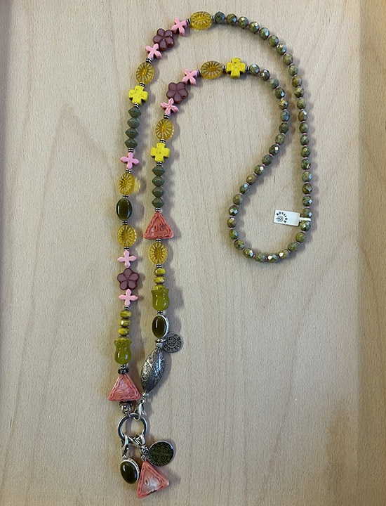 Die Basis der meisten Ketten sind Glasperlen aus traditionsreichen Glasfabriken in Tschechien. Deren Glasperlen haben wunderbare Farben, die sich schön miteinander kombinieren lassen.